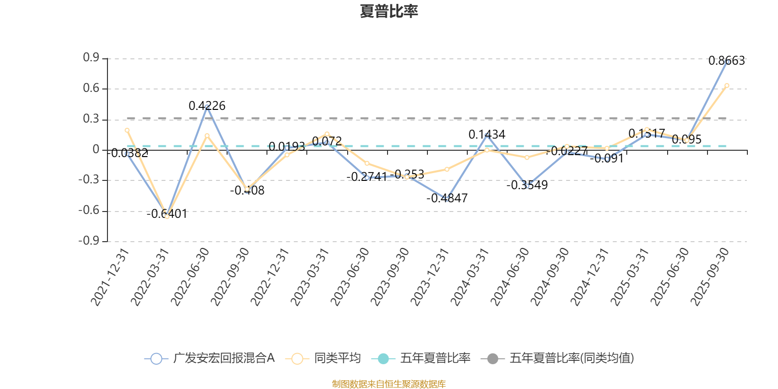 截至9月30日,基金近三年夏普比率为0.1399,位于同类可比基金1084/1285。