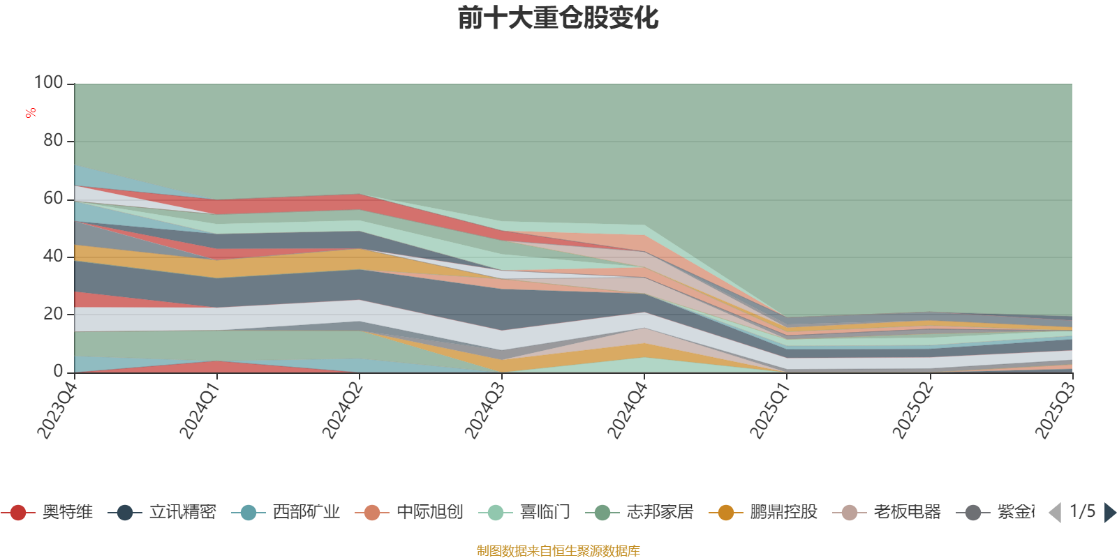 截至2025年三季度末,基金十大重仓股分别是宁德时代、贵州茅台、中国平安、招商银行、紫金矿业、中际旭创、新易盛、立讯精密、长江电力、东方财富。