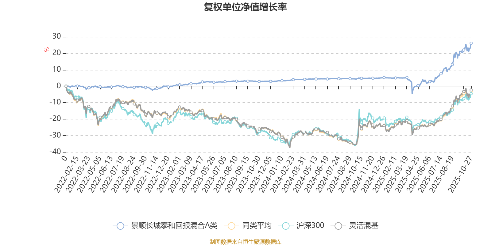 截至10月27日,景顺长城泰和回报混合A类近三个月复权单位净值增长率为14.02%,位于同类可比基金559/1287;近半年复权单位净值增长率为25.67%,位于同类可比基金593/1287;近一年复权单位净值增长率为20.39%,位于同类可比基金691/1287;近三年复权单位净值增长率为28.74%,位于同类可比基金366/1286。