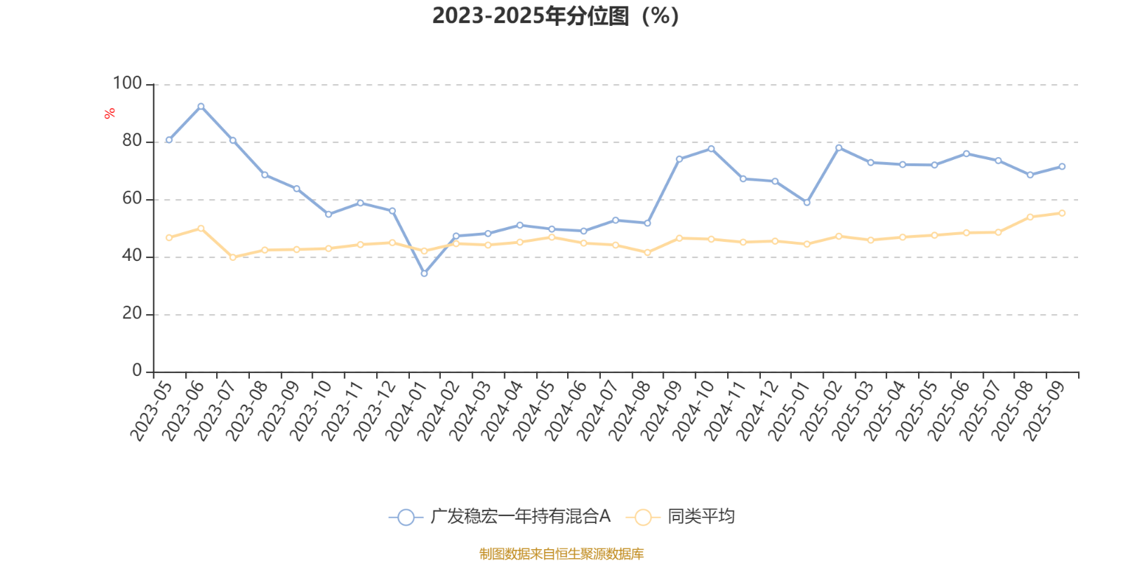 通过所选区间该基金净值增长率分位图,可以观察该基金与同类基金业绩比较情况。图为坐标原点到区间内某时点的净值增长率在同类基金中的分位数。