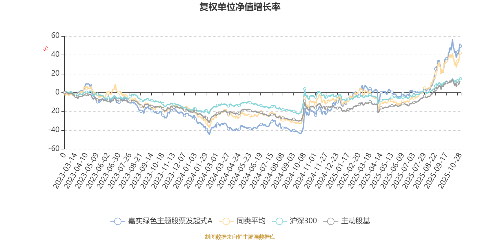 截至10月28日,嘉实绿色主题股票发起式A近三个月复权单位净值增长率为44.71%,位于同类可比基金23/63;近半年复权单位净值增长率为51.57%,位于同类可比基金34/63;近一年复权单位净值增长率为86.26%,位于同类可比基金7/61。