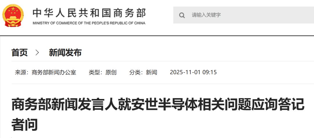 昨天(11月1日),商务部新闻发言人就安世半导体相关问题应询答记者问。