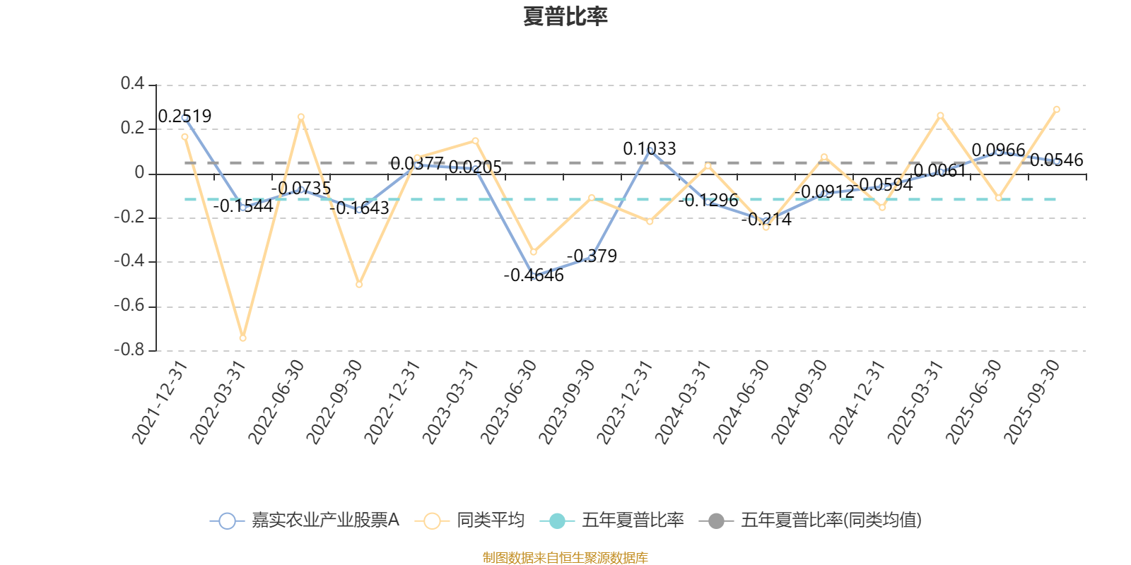 截至9月30日,基金近三年夏普比率为-0.0884,位于同类可比基金38/40。