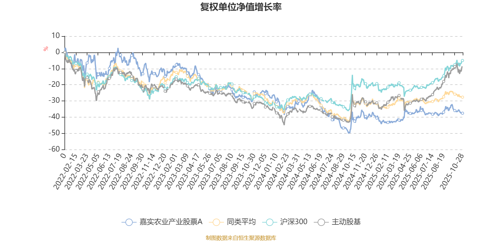 截至10月28日,嘉实农业产业股票A近三个月复权单位净值增长率为-0.05%,位于同类可比基金31/43;近半年复权单位净值增长率为1.36%,位于同类可比基金28/43;近一年复权单位净值增长率为2.54%,位于同类可比基金27/43;近三年复权单位净值增长率为-23.49%,位于同类可比基金38/40。