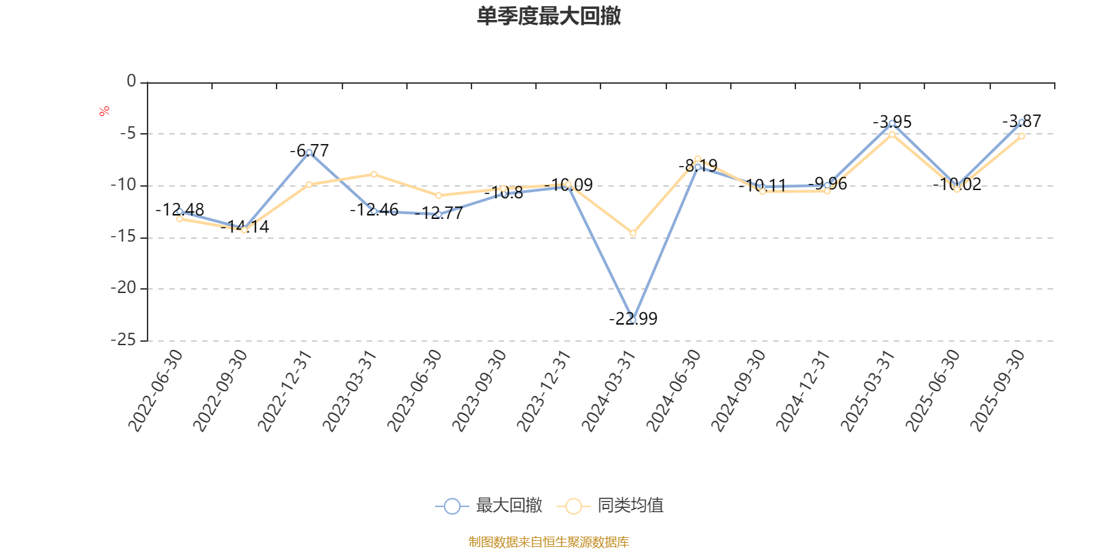 截至10月28日,基金近三年最大回撤为41.73%,同类可比基金排名102/124。单季度最大回撤出现在2024年一季度,为22.99%。