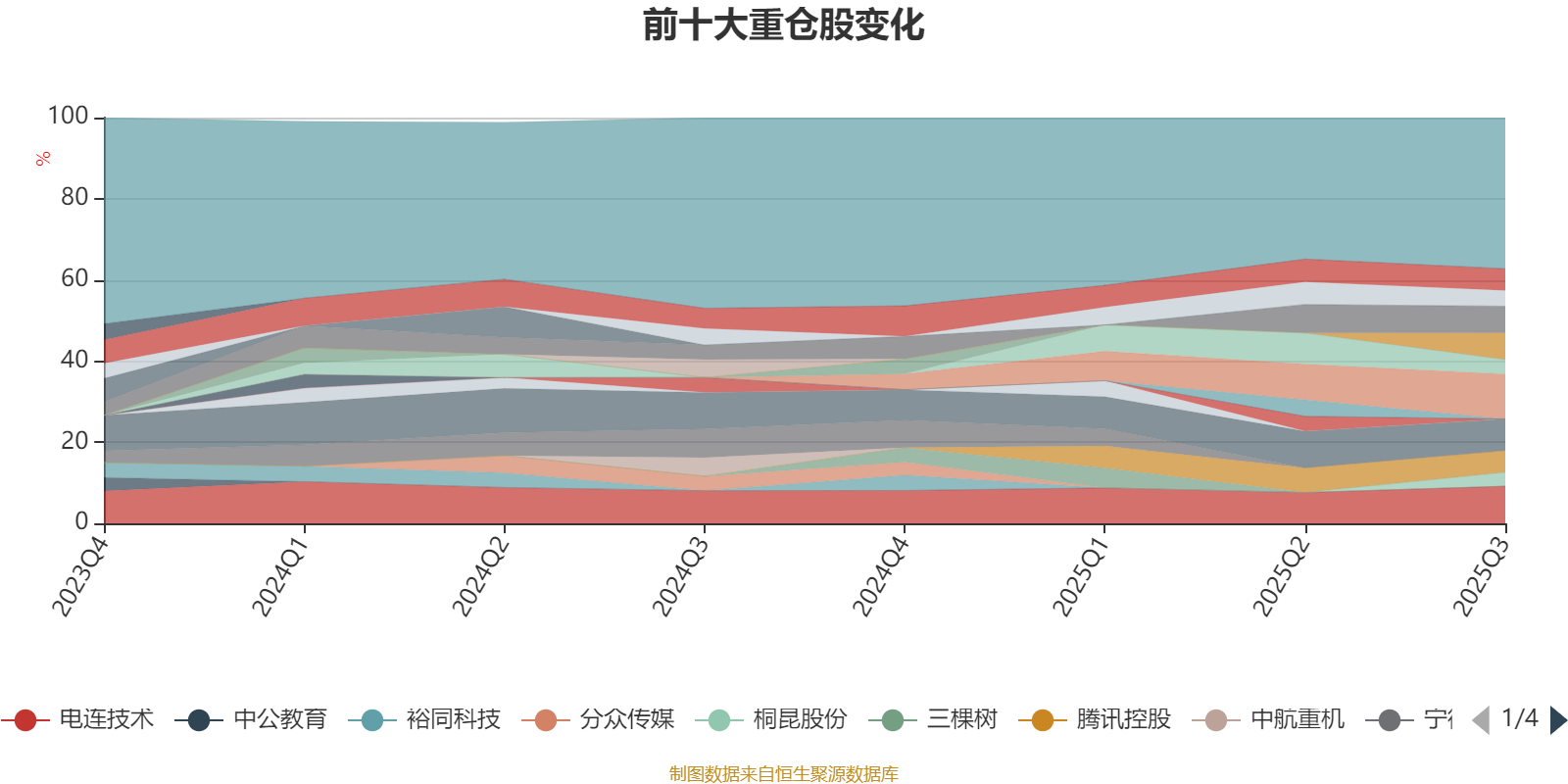 截至2025年三季度末,基金十大重仓股分别是理想汽车-W、电连技术、鼎龙股份、阿里巴巴-W、华鲁恒升、科博达、腾讯控股、华友钴业、亿纬锂能、桐昆股份。