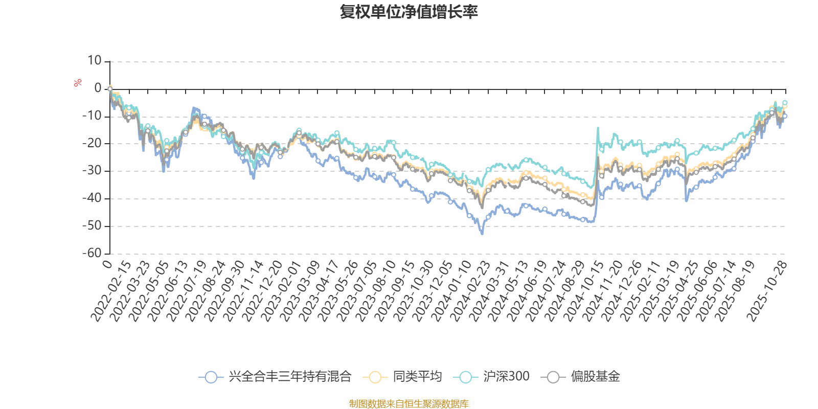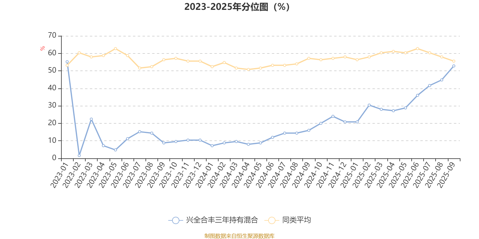 截至10月28日,兴全合丰三年持有混合近三个月复权单位净值增长率为19.70%,位于同类可比基金47/130;近半年复权单位净值增长率为40.69%,位于同类可比基金34/130;近一年复权单位净值增长率为39.78%,位于同类可比基金37/130;近三年复权单位净值增长率为34.20%,位于同类可比基金45/124。