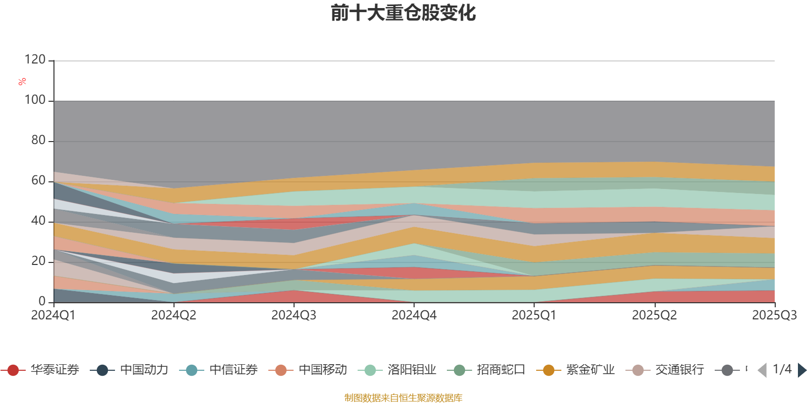 该基金持股集中度较高。截至2025年三季度末,基金十大重仓股分别是中国银河、中国人保、中国太保、中国船舶、天山铝业、云铝股份、中国铝业、华泰证券、紫金矿业、中信证券。