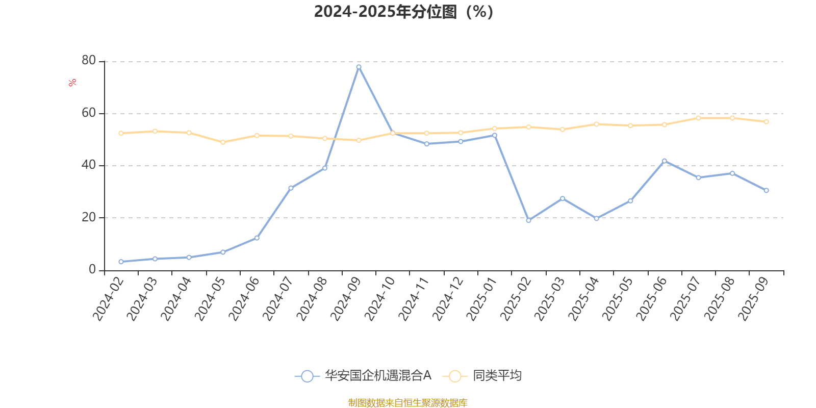 通过所选区间该基金净值增长率分位图,可以观察该基金与同类基金业绩比较情况。图为坐标原点到区间内某时点的净值增长率在同类基金中的分位数。