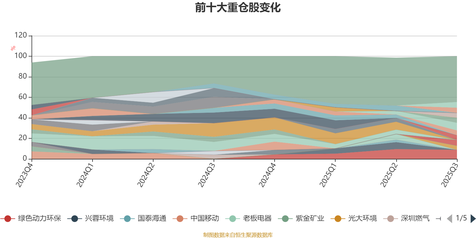 该基金持股集中度较高。截至2025年三季度末,基金十大重仓股分别是绿色动力环保、中谷物流、贵州茅台、大参林、中孚实业、兴发集团、蒙牛乳业、长江电力、泸州老窖、光大环境。