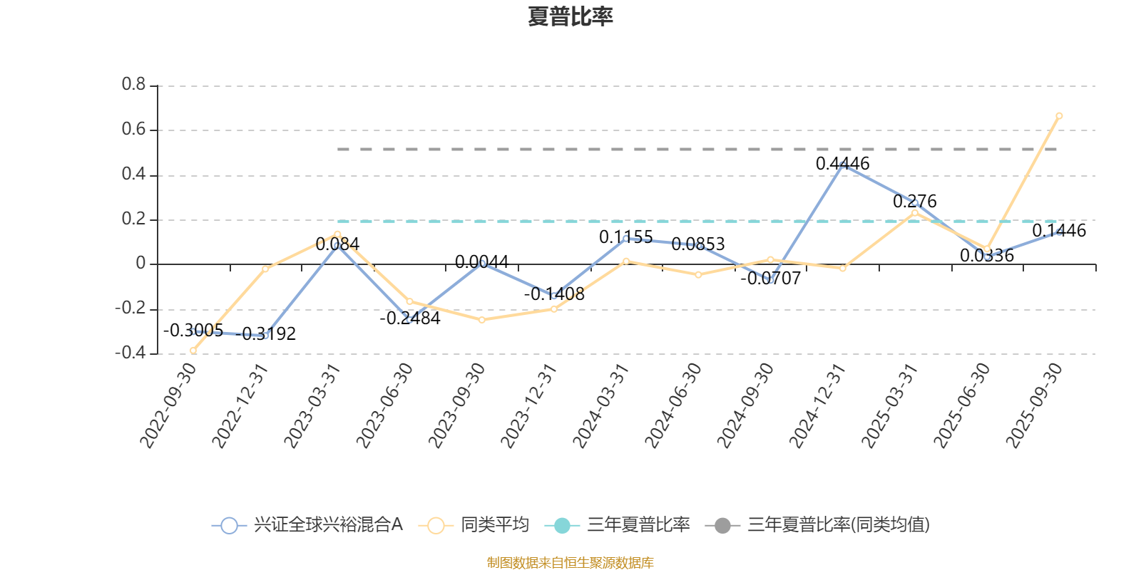 截至9月30日,基金近三年夏普比率为0.1915,位于同类可比基金102/119。