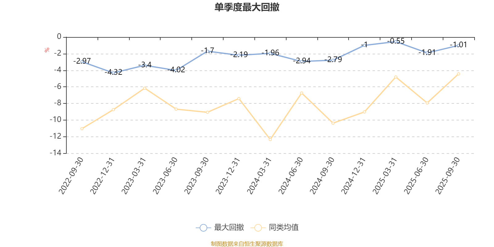 截至10月28日,基金近三年最大回撤为6.54%,同类可比基金排名0/117。单季度最大回撤出现在2022年四季度,为4.32%。
