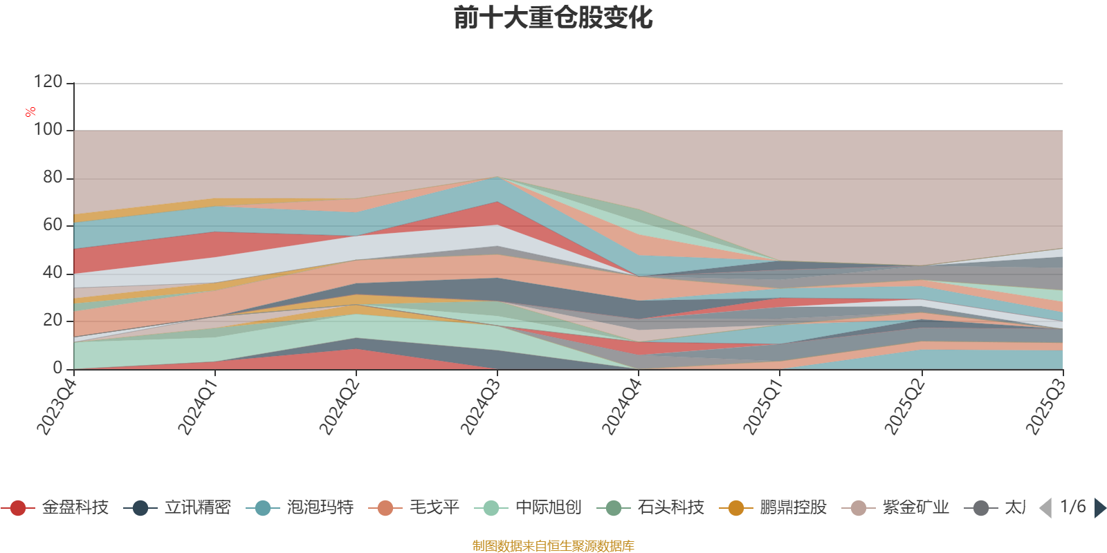 截至2025年三季度末,基金十大重仓股分别是胜宏科技、泡泡玛特、腾讯控股、浙江荣泰、阿里巴巴-W、沪电股份、中国东方教育、工业富联、上美股份、毛戈平。