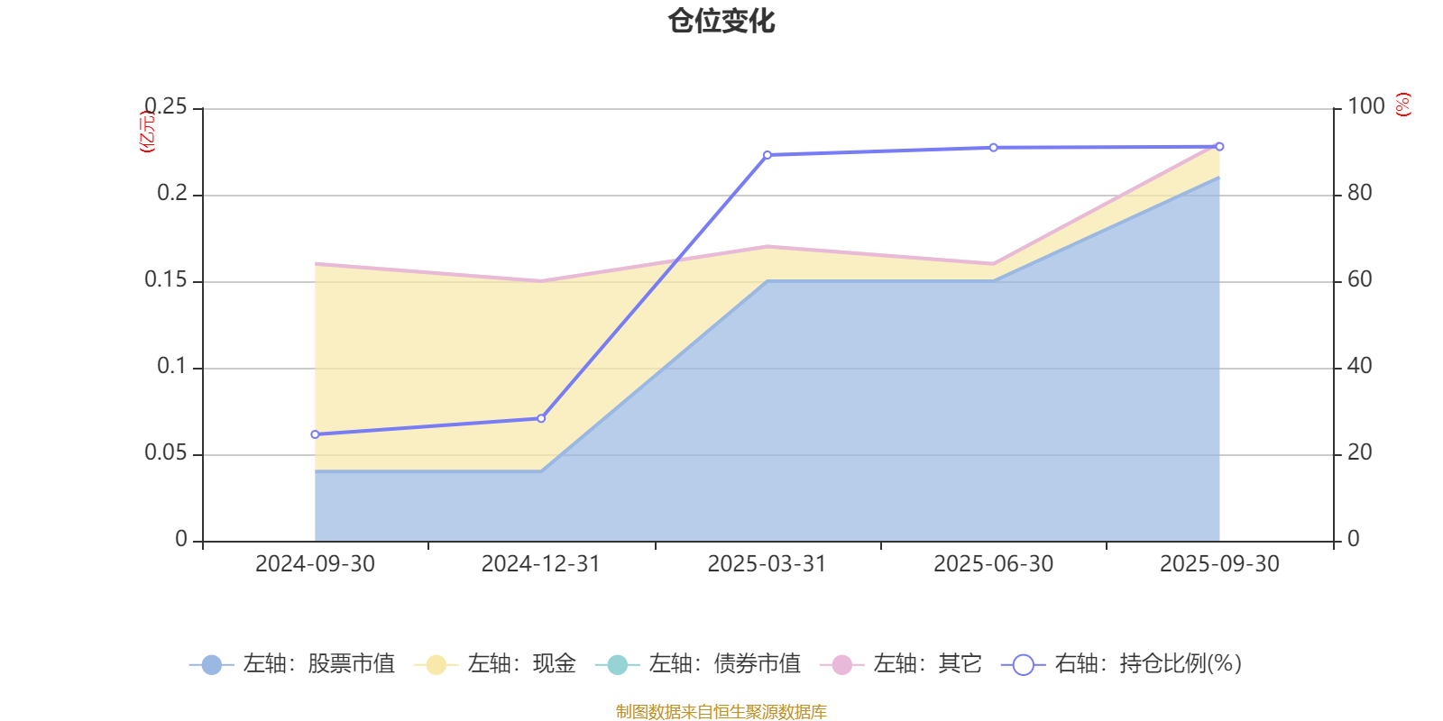 据定期报告数据统计,成立以来平均股票仓位为64.81%,同类平均为83.73%。2025年三季度末基金达到91.11%的最高仓位,2024年三季度末最低,为24.58%。