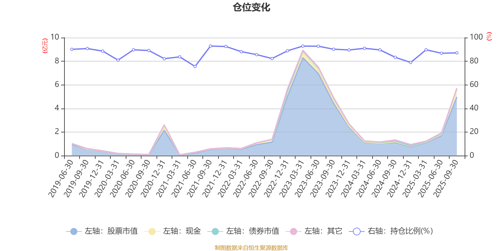 据定期报告数据统计,近三年平均股票仓位为88.4%,同类平均为88.27%。2021年三季度末基金达到92.9%的最高仓位,2021年上半年末最低,为75.63%。
