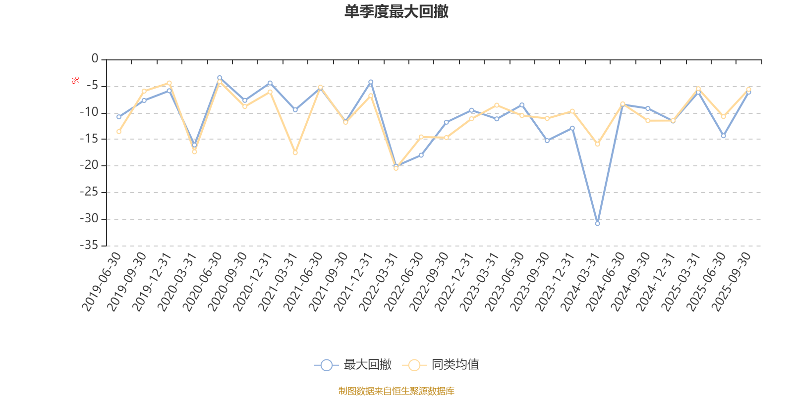 截至10月28日,基金近三年最大回撤为50.67%,同类可比基金排名148/156。单季度最大回撤出现在2024年一季度,为30.83%。