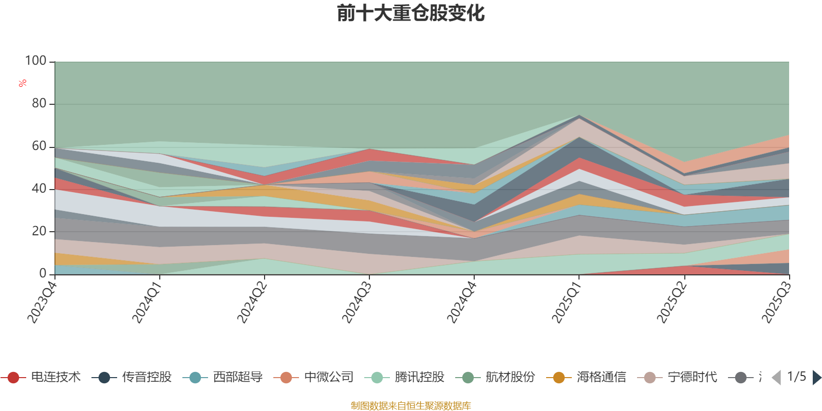 该基金持股集中度较高。截至2025年三季度末,基金重仓股分别是小米集团-W、阿里巴巴-W、腾讯控股、湖南裕能、深信服、中微公司、兆易创新、经纬恒润、传音控股、比亚迪、比亚迪股份。