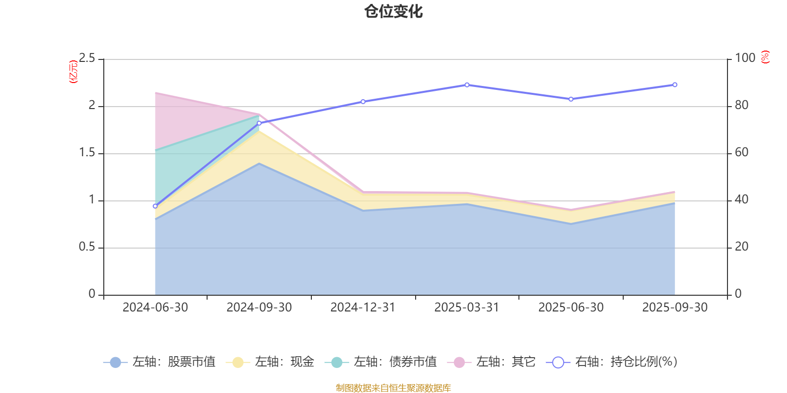 据定期报告数据统计,成立以来平均股票仓位为75.55%,同类平均为83.73%。2025年三季度末基金达到89.08%的最高仓位,2024年上半年末最低,为37.59%。