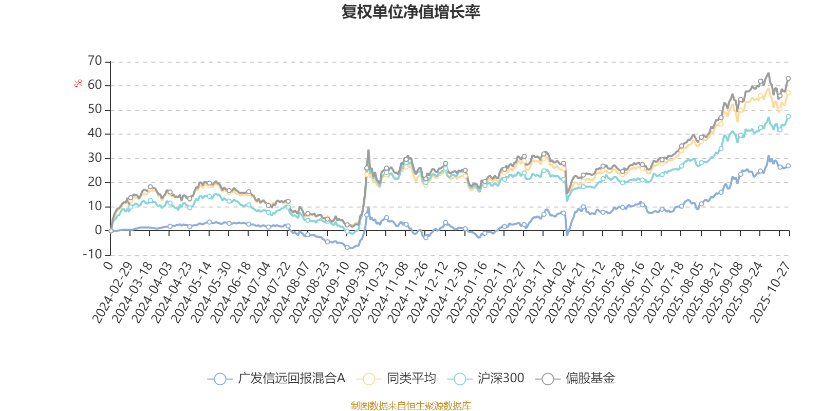 截至10月27日,广发信远回报混合A近三个月复权单位净值增长率为12.89%,位于同类可比基金374/689;近半年复权单位净值增长率为18.72%,位于同类可比基金511/688;近一年复权单位净值增长率为22.17%,位于同类可比基金402/653。