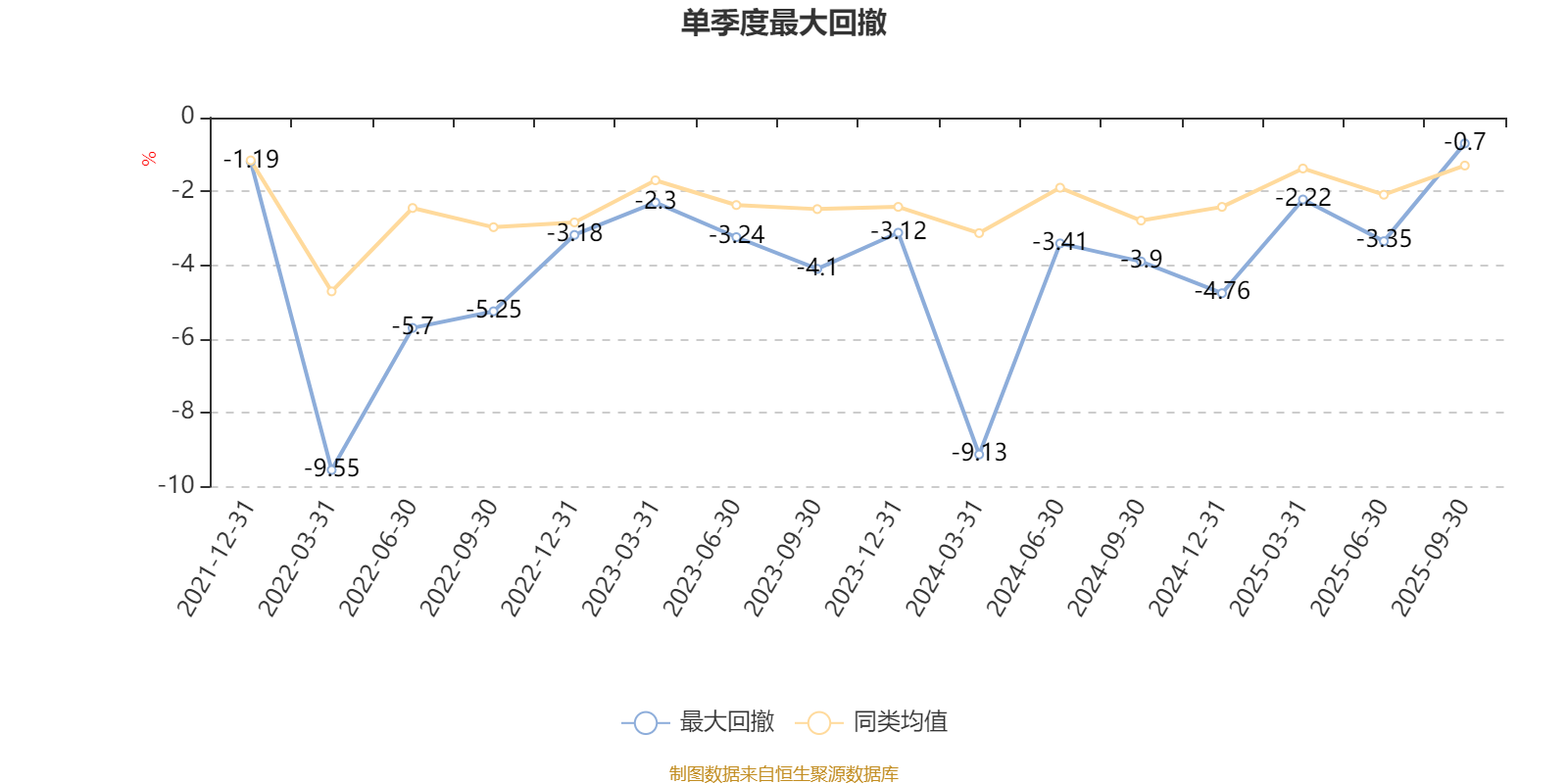 截至10月27日,基金近三年最大回撤为10.32%,同类可比基金排名410/535。单季度最大回撤出现在2022年一季度,为9.55%。