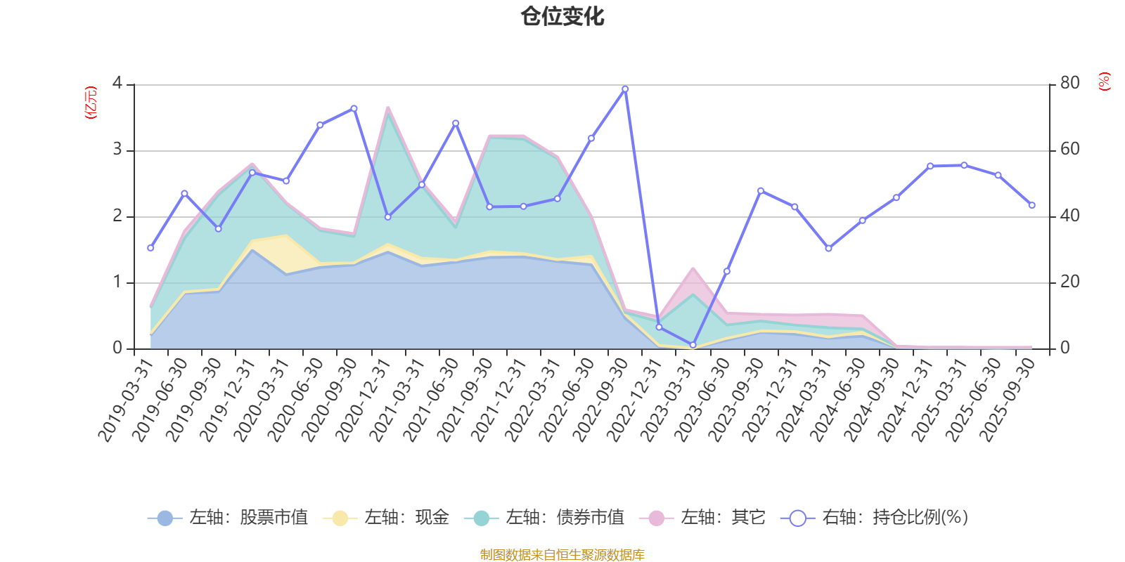 据定期报告数据统计,近三年平均股票仓位为36.97%,同类平均为72.35%。2022年三季度末基金达到78.59%的最高仓位,2023年一季度末最低,为1.17%。