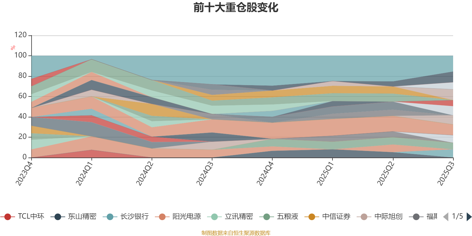 该基金持股集中度较高,近2年前十大重仓股集中度长期超过60%。截至2025年三季度末,基金十大重仓股分别是拓普集团、明阳智能、宁德时代、建设银行、常熟银行、长沙银行、中航沈飞、宁波银行、五粮液、爱柯迪。