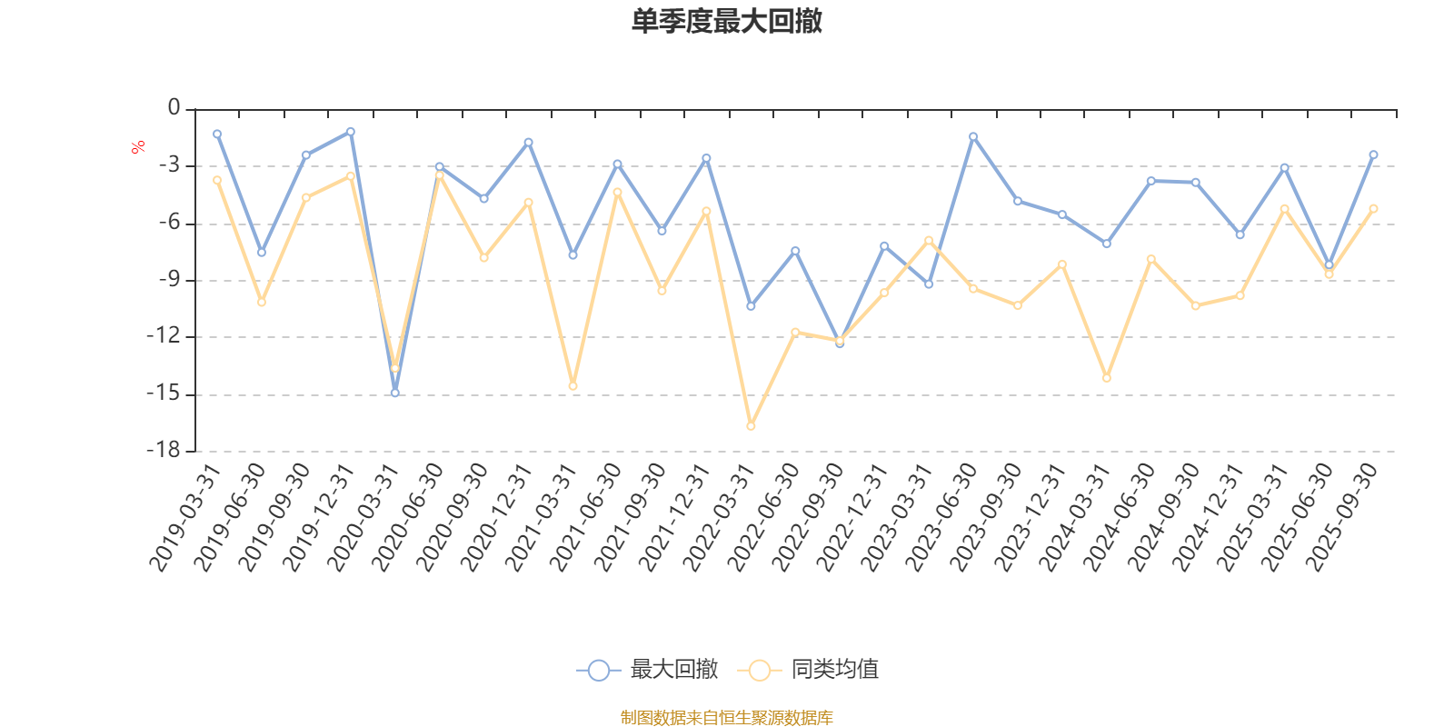 截至10月27日,基金近三年最大回撤为22.57%,同类可比基金排名320/1274。单季度最大回撤出现在2020年一季度,为14.93%。
