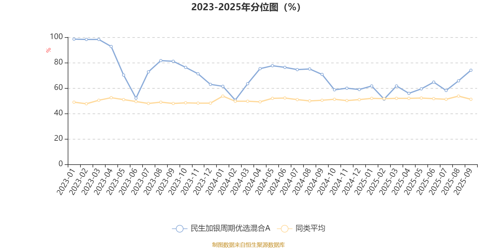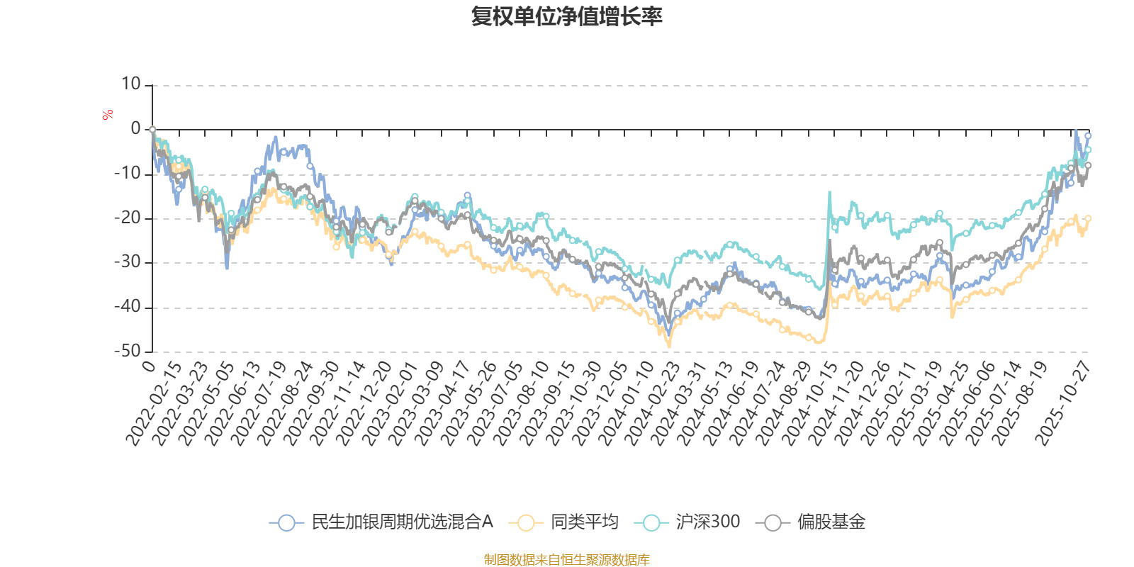 截至10月27日,民生加银周期优选混合A近三个月复权单位净值增长率为30.28%,位于同类可比基金92/689;近半年复权单位净值增长率为51.66%,位于同类可比基金73/688;近一年复权单位净值增长率为48.39%,位于同类可比基金94/653;近三年复权单位净值增长率为24.77%,位于同类可比基金116/364。
