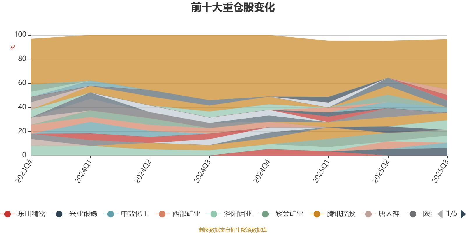 截至2025年三季度末,基金十大重仓股分别是江西铜业股份、天山铝业、兴业银锡、中国有色矿业、洛阳钼业、鲁西化工、紫金矿业、中盐化工、中孚实业、梅花生物。