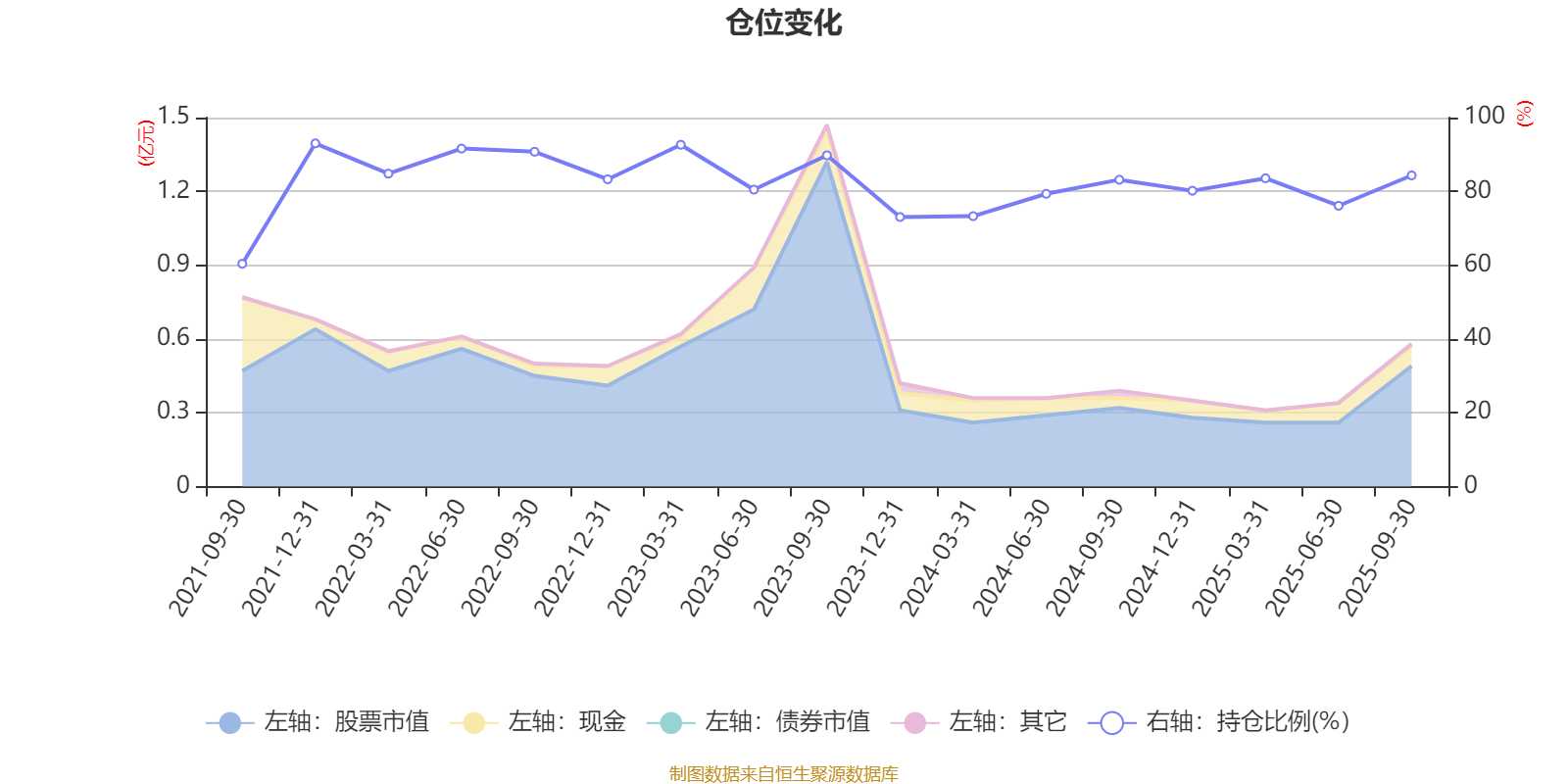 据定期报告数据统计,近三年平均股票仓位为81.6%,同类平均为83.73%。2021年末基金达到93.02%的最高仓位,2021年三季度末最低,为60.38%。