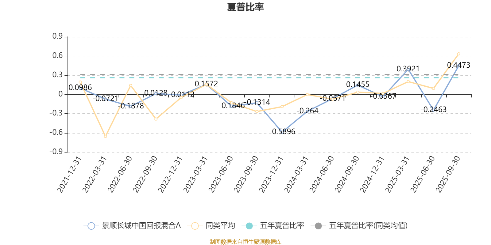 截至9月30日,基金近三年夏普比率为0.2765,位于同类可比基金963/1285。