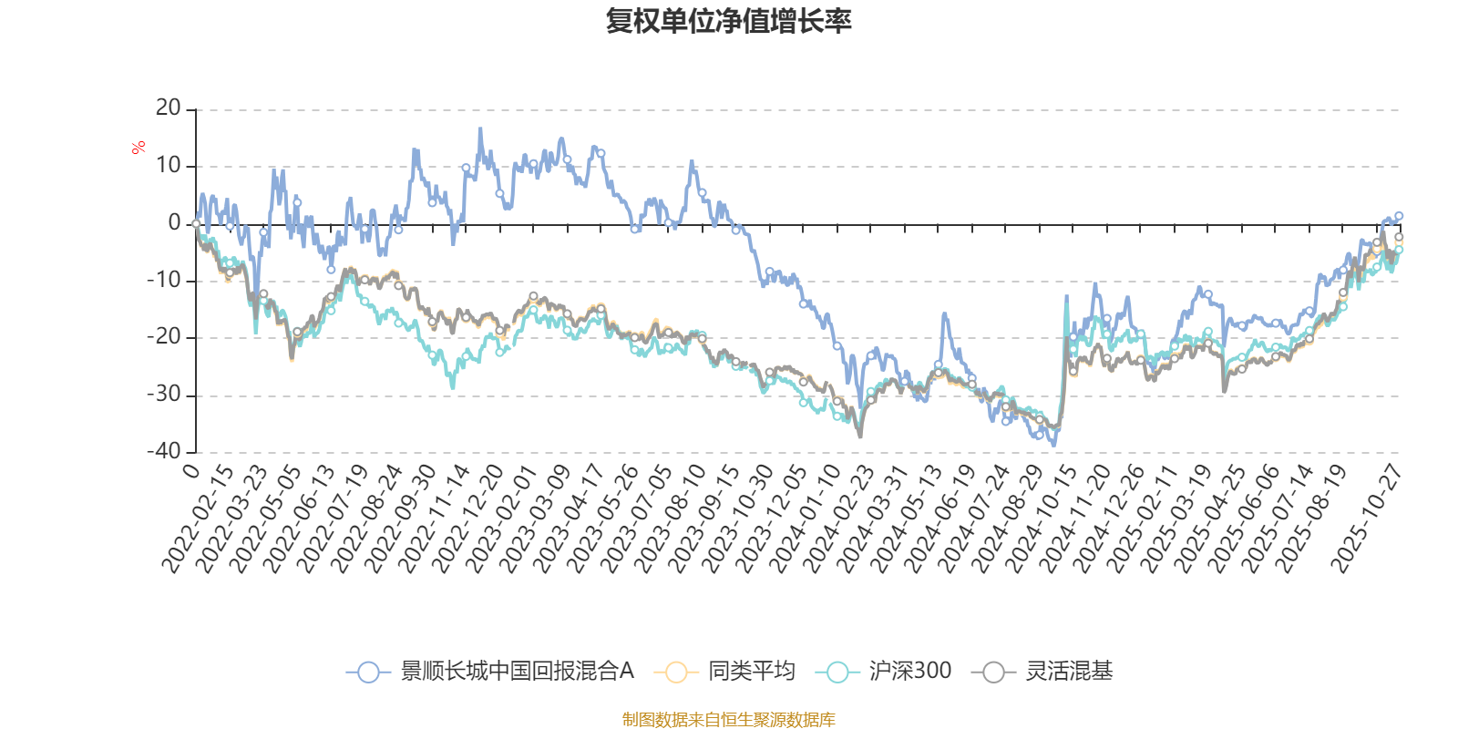 截至10月27日,景顺长城中国回报混合A近三个月复权单位净值增长率为11.39%,位于同类可比基金683/1287;近半年复权单位净值增长率为23.38%,位于同类可比基金659/1287;近一年复权单位净值增长率为24.34%,位于同类可比基金582/1287;近三年复权单位净值增长率为-1.16%,位于同类可比基金1018/1286。