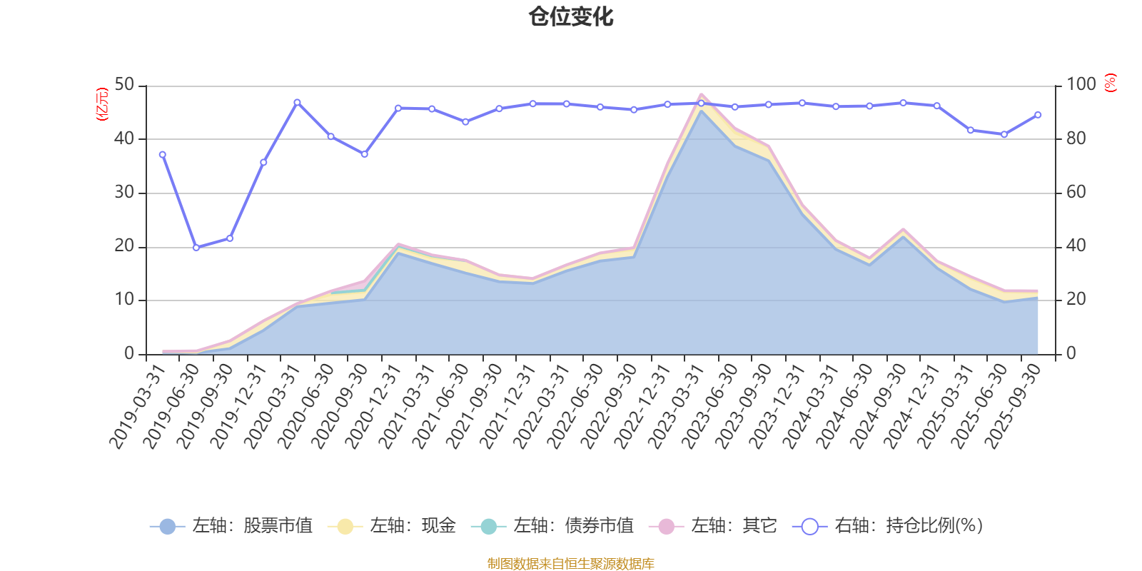基金管理人在三季报中表示,报告期内,本基金对部分涨幅较大的品种获利了结,并适当降低了仓位。市场在三季度诸多因素共振下走出大幅单边行情,与 2014 下半年和 2015 上半年有一些相同特征,即实体经济持续低物价,资金资产荒,由此在股市里由于缺乏实体经济复苏线索的板块,拥挤在偏主题的产业阶段较早期的固态电池、机器人、AI 等板块。