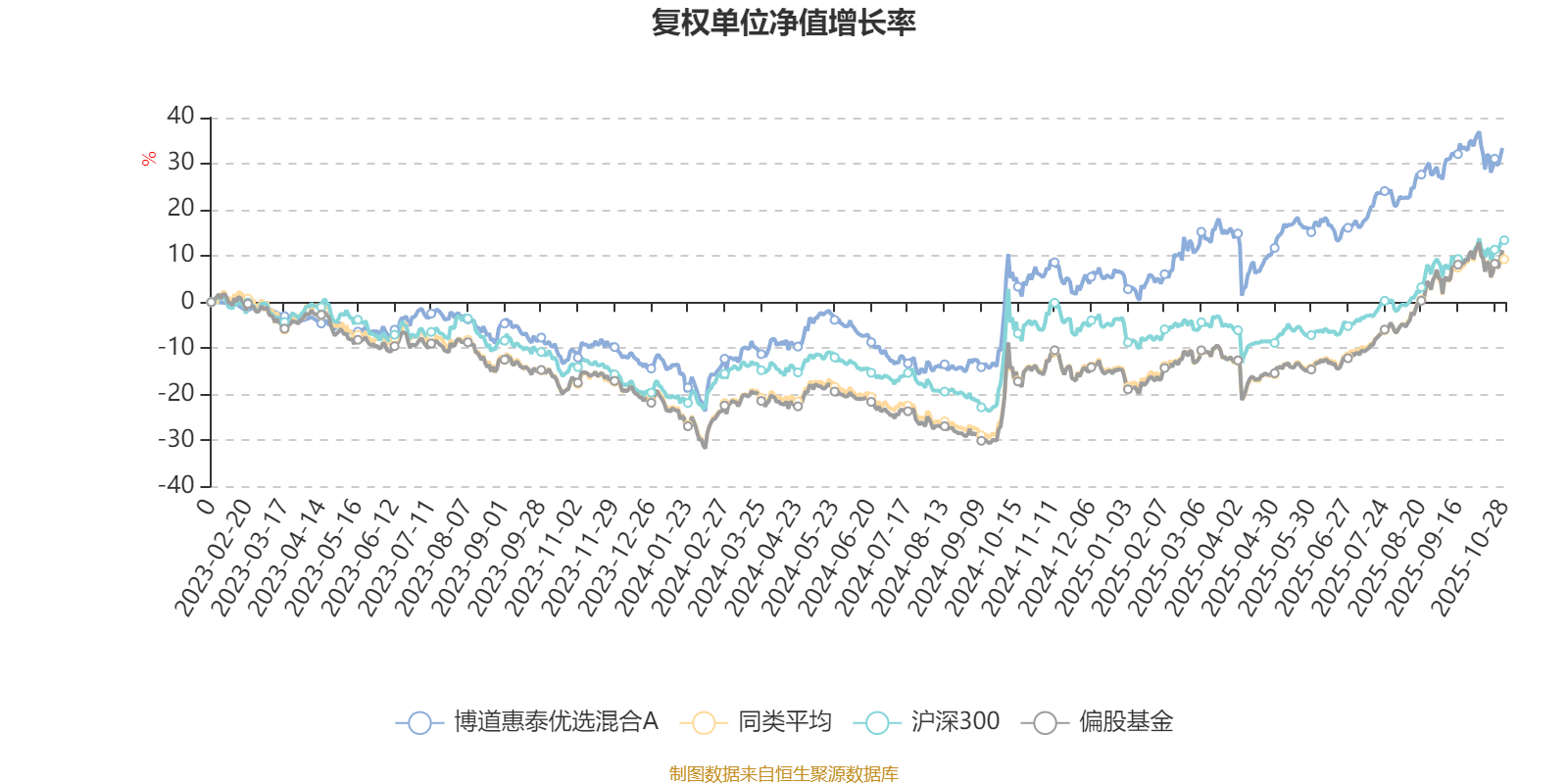 截至10月27日,博道惠泰优选混合A近三个月复权单位净值增长率为7.79%,位于同类可比基金217/265;近半年复权单位净值增长率为21.07%,位于同类可比基金194/265;近一年复权单位净值增长率为25.54%,位于同类可比基金147/265。