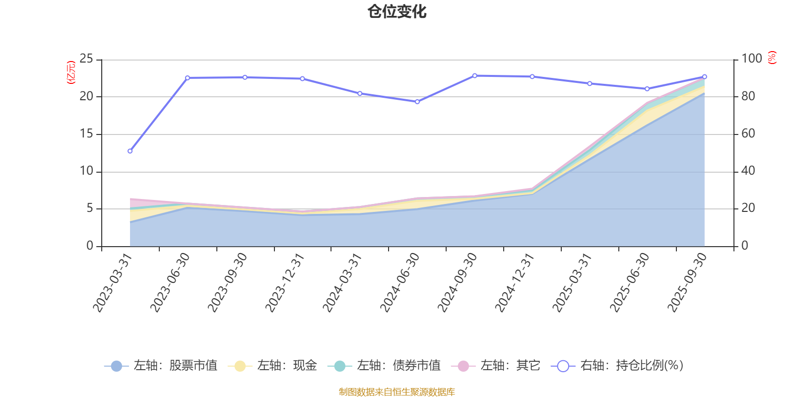 据定期报告数据统计,成立以来平均股票仓位为84.12%,同类平均为85.99%。2024年三季度末基金达到91.37%的最高仓位,2023年一季度末最低,为51.02%。