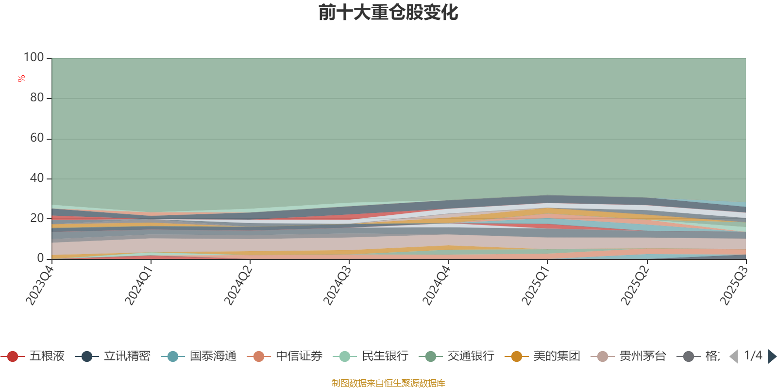 截至2025年三季度末,基金十大重仓股分别是贵州茅台、宁德时代、中国平安、恒瑞医药、中信证券、寒武纪、澜起科技、新易盛、立讯精密、伊利股份。