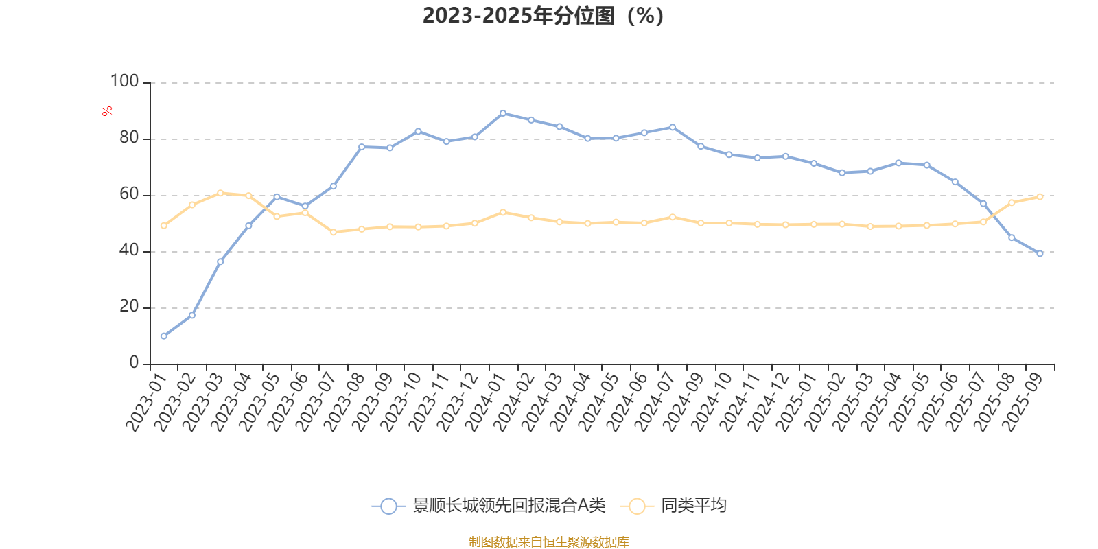 通过所选区间该基金净值增长率分位图,可以观察该基金与同类基金业绩比较情况。图为坐标原点到区间内某时点的净值增长率在同类基金中的分位数。