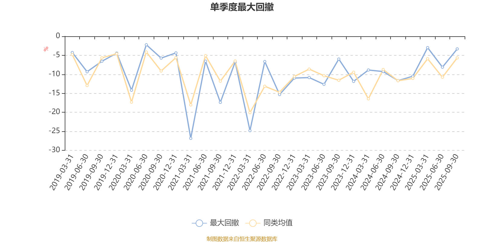 截至10月27日,基金近三年最大回撤为32.78%,同类可比基金排名185/513。单季度最大回撤出现在2021年一季度,为26.88%。