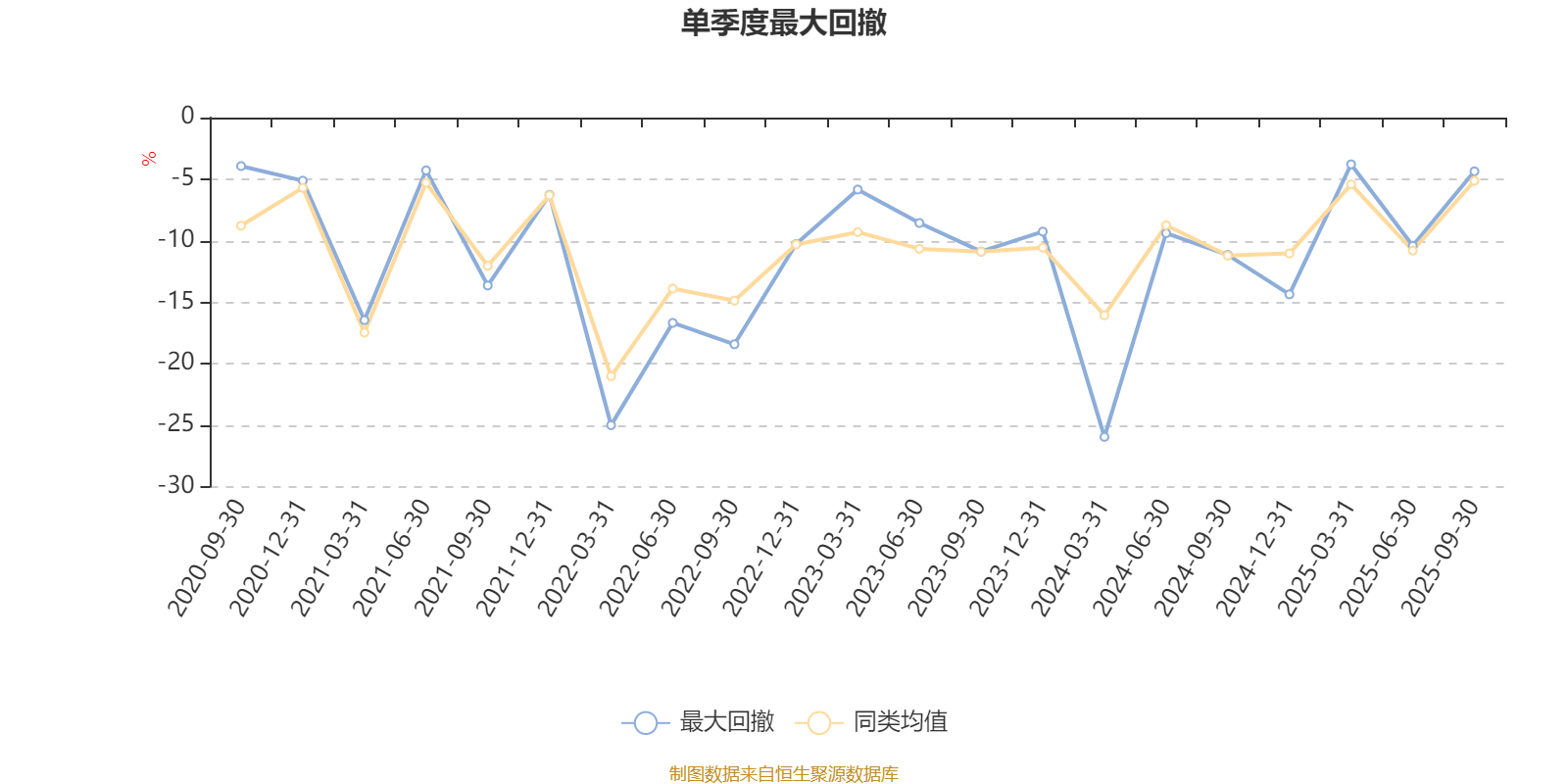 截至10月27日,基金近三年最大回撤为34.36%,同类可比基金排名75/177。单季度最大回撤出现在2024年一季度,为25.96%。