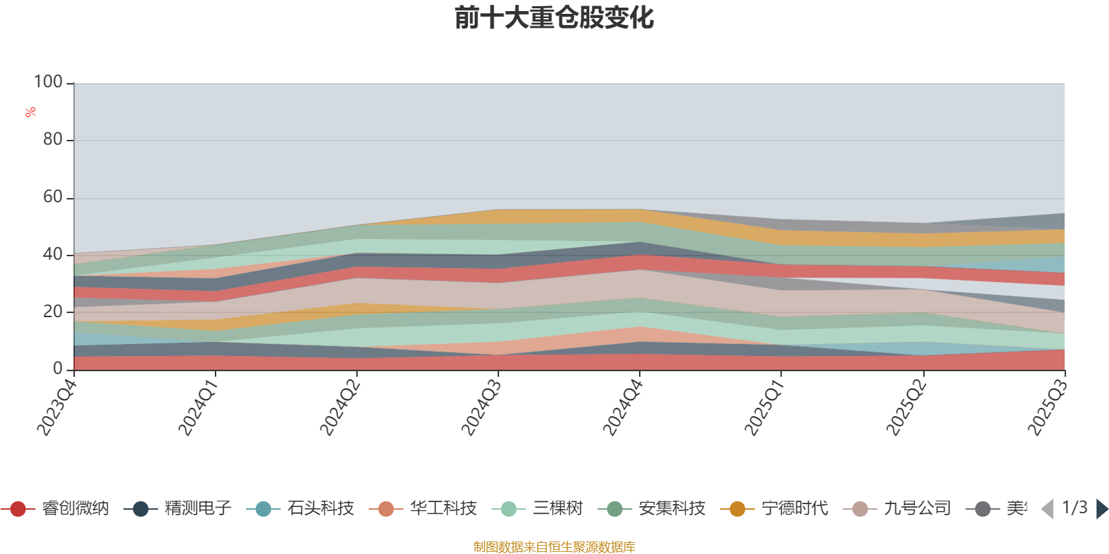 截至2025年三季度末,基金十大重仓股分别是九号公司、睿创微纳、平安好医生、爱旭股份、三棵树、帝尔激光、奕瑞科技、思特威、华大智造、中船特气。