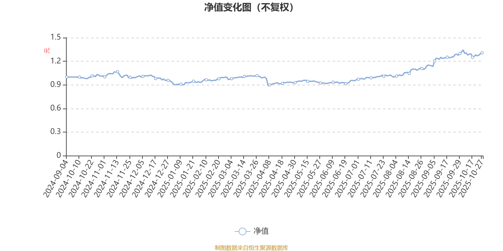 AI基金湘财新能源量化选股混合A(020779)披露2025年三季报,第三季度基金利润149.01万元,加权平均基金份额本期利润0.3702元。报告期内,基金净值增长率为35.77%,截至三季度末,基金规模为729.74万元。