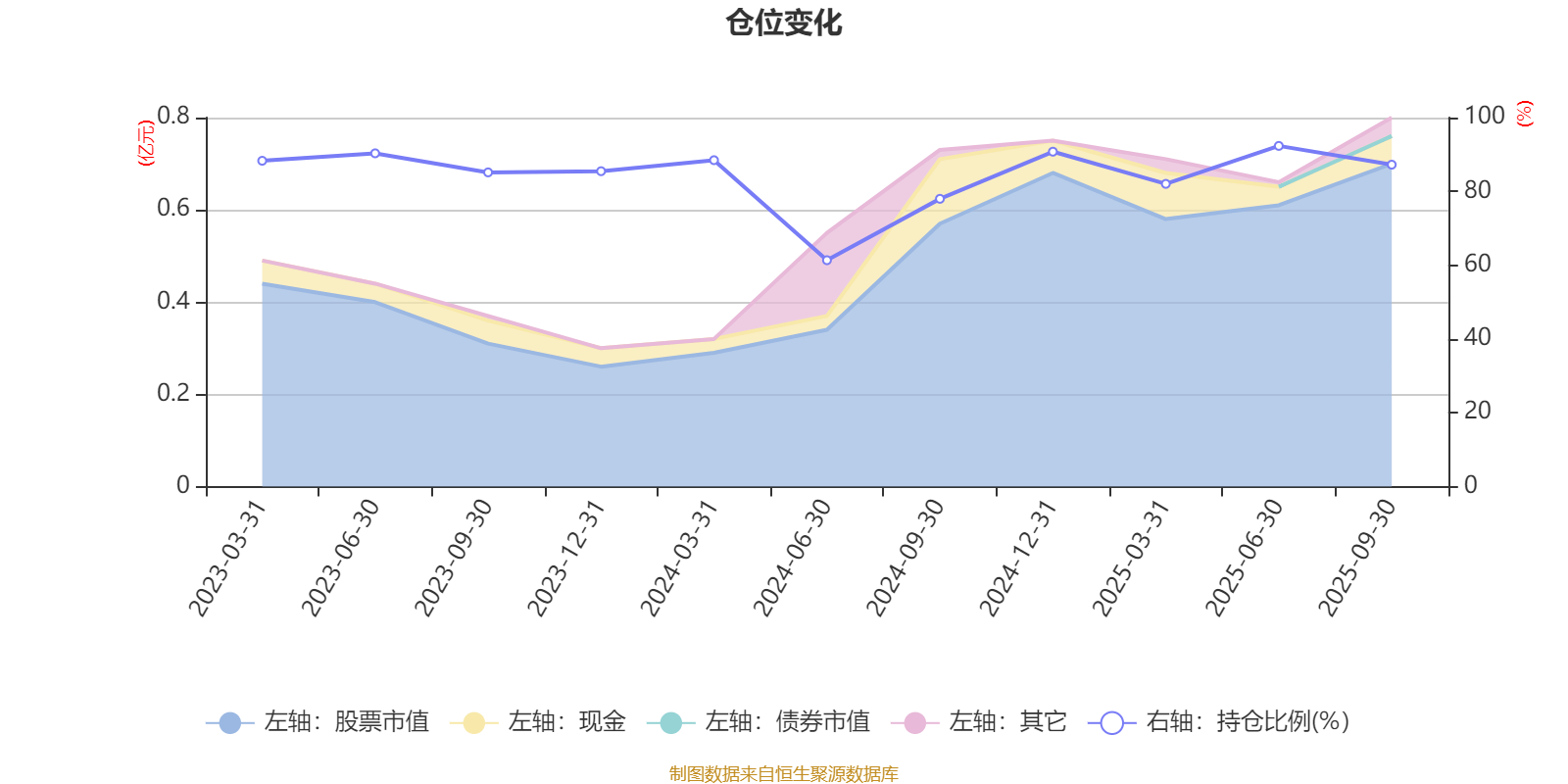 据定期报告数据统计,成立以来平均股票仓位为84.49%,同类平均为83.73%。2025年上半年末基金达到92.33%的最高仓位,2024年上半年末最低,为61.35%。