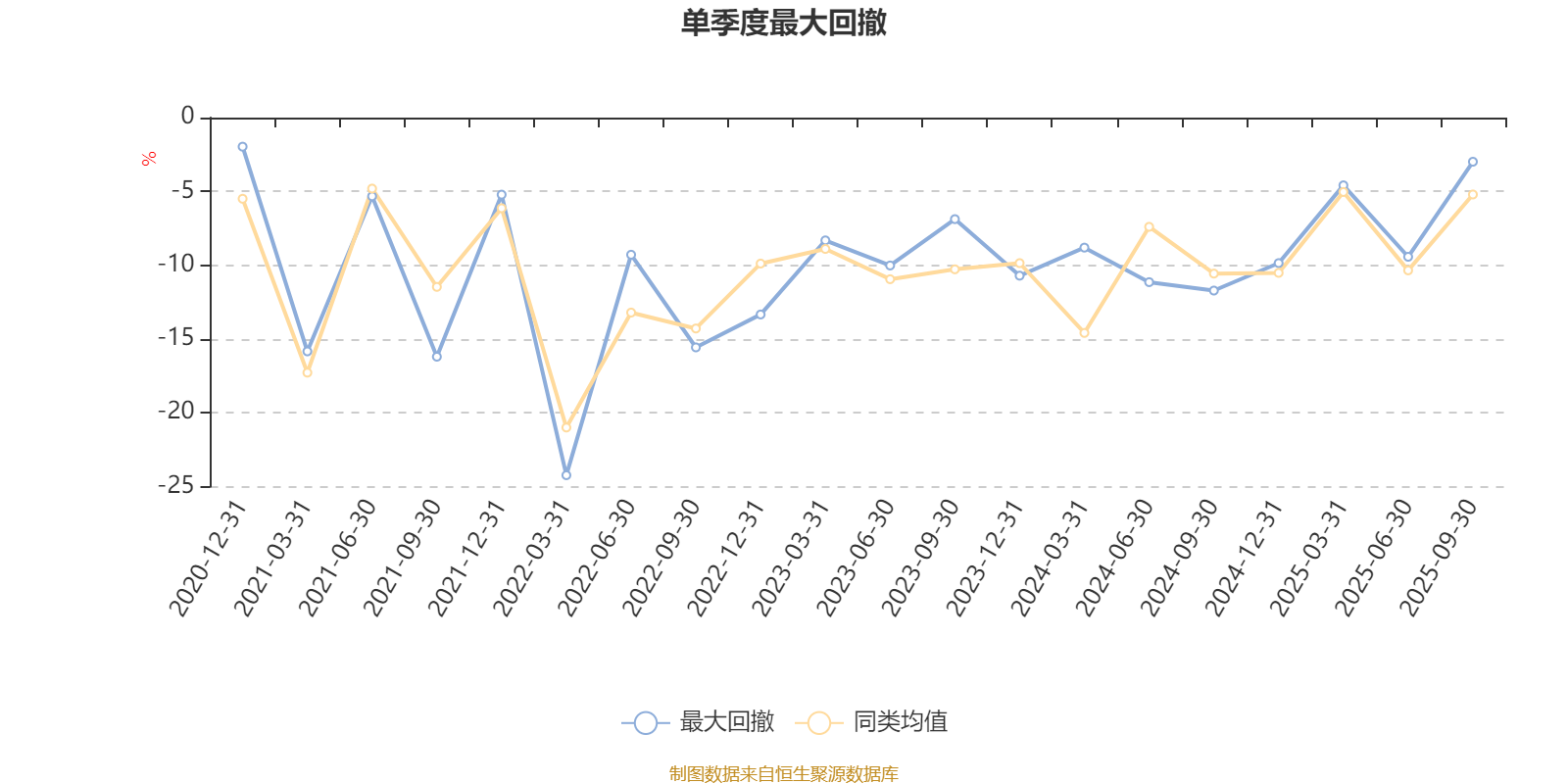截至10月27日,基金近三年最大回撤为25.82%,同类可比基金排名20/124。单季度最大回撤出现在2022年一季度,为24.23%。