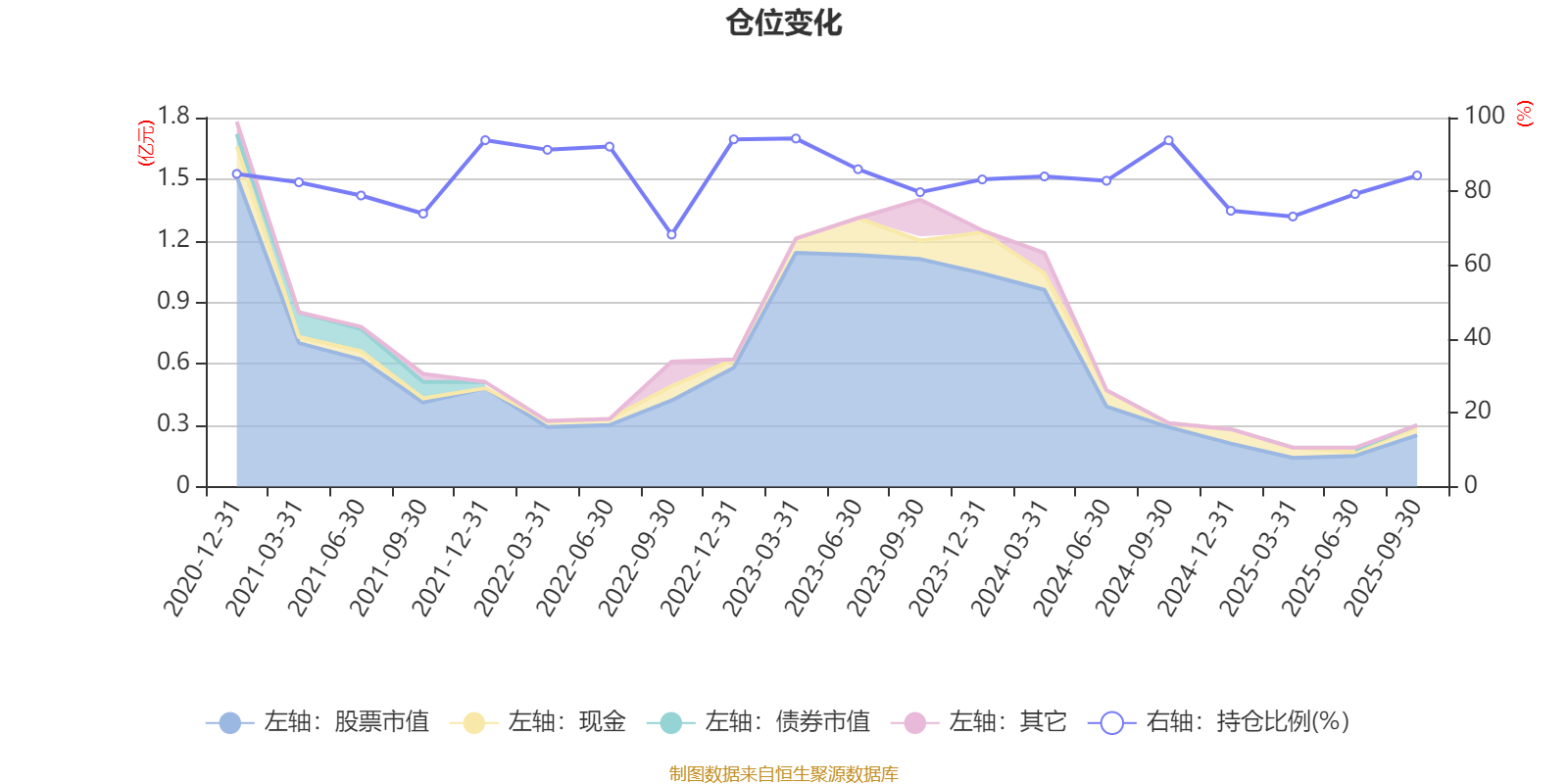据定期报告数据统计,近三年平均股票仓位为84.15%,同类平均为72.35%。2023年一季度末基金达到94.33%的最高仓位,2022年三季度末最低,为68.3%。