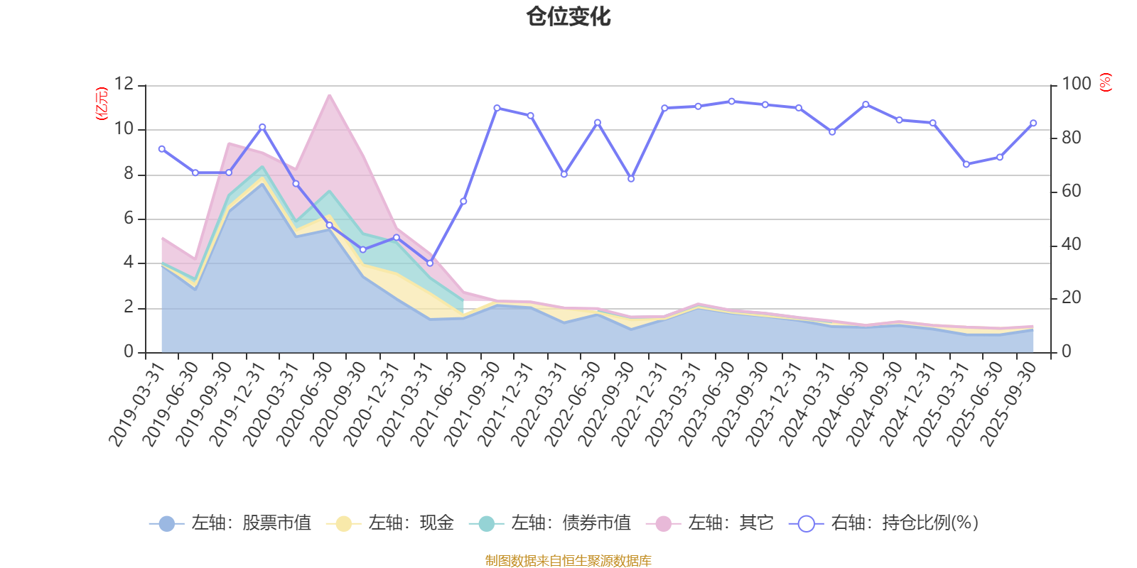 据定期报告数据统计,近三年平均股票仓位为86.61%,同类平均为72.35%。2023年上半年末基金达到93.98%的最高仓位,2021年一季度末最低,为33.42%。