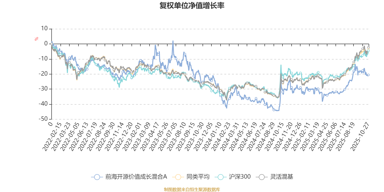 截至10月27日,前海开源价值成长混合A近三个月复权单位净值增长率为8.99%,位于同类可比基金788/1287;近半年复权单位净值增长率为20.66%,位于同类可比基金743/1287;近一年复权单位净值增长率为13.37%,位于同类可比基金856/1287;近三年复权单位净值增长率为2.14%,位于同类可比基金954/1286。