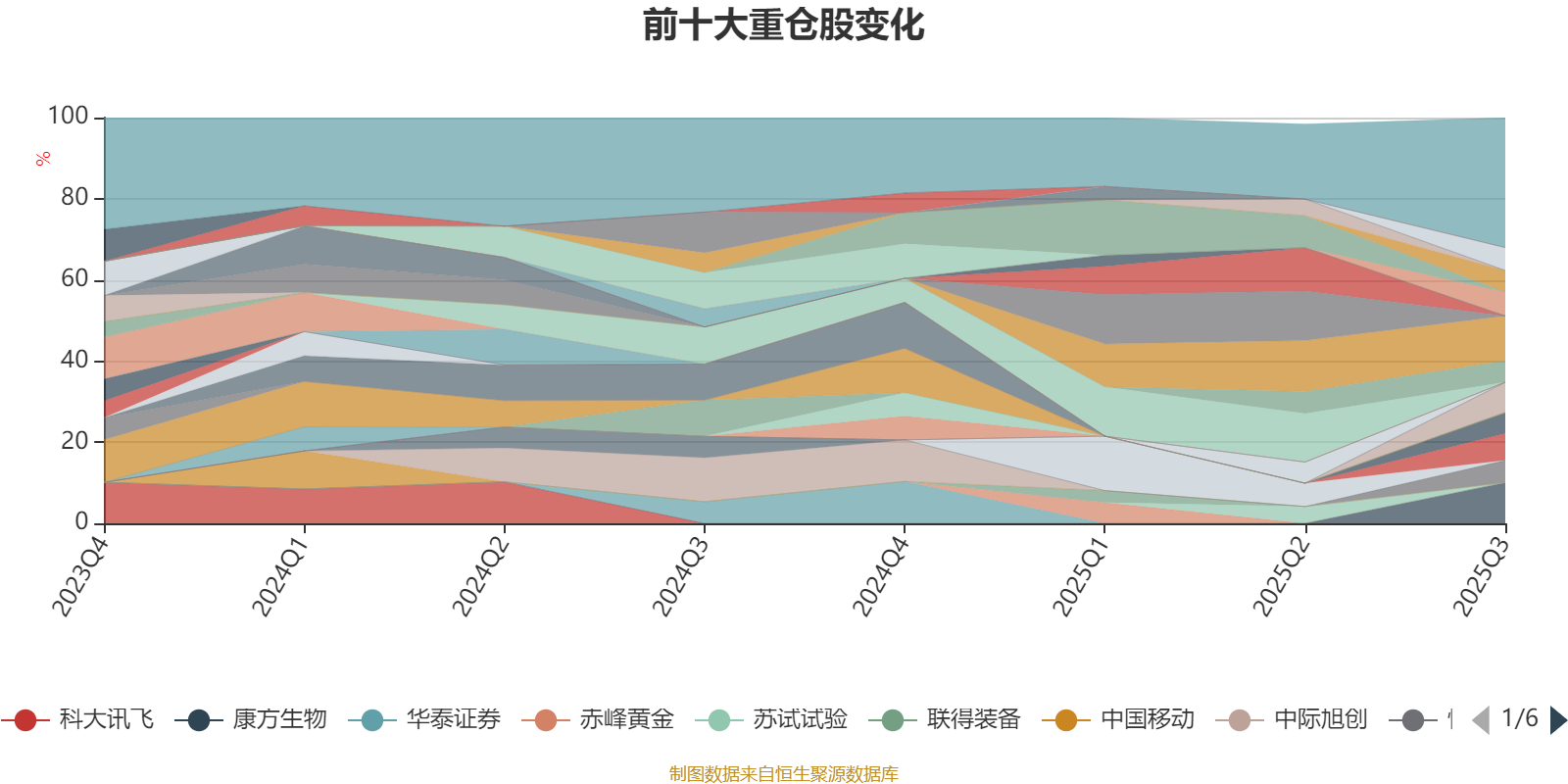 该基金持股集中度较高,近2年前十大重仓股集中度长期超过60%。截至2025年三季度末,基金十大重仓股分别是中芯国际、康方生物、三生制药、ST华通、株冶集团、星宇股份、恒立液压、快手-W、牧原股份、石药集团。