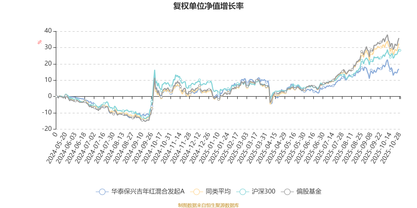 截至10月27日,华泰保兴吉年红混合发起A近三个月复权单位净值增长率为4.83%,位于同类可比基金577/689;近半年复权单位净值增长率为12.60%,位于同类可比基金599/688;近一年复权单位净值增长率为13.10%,位于同类可比基金537/653。