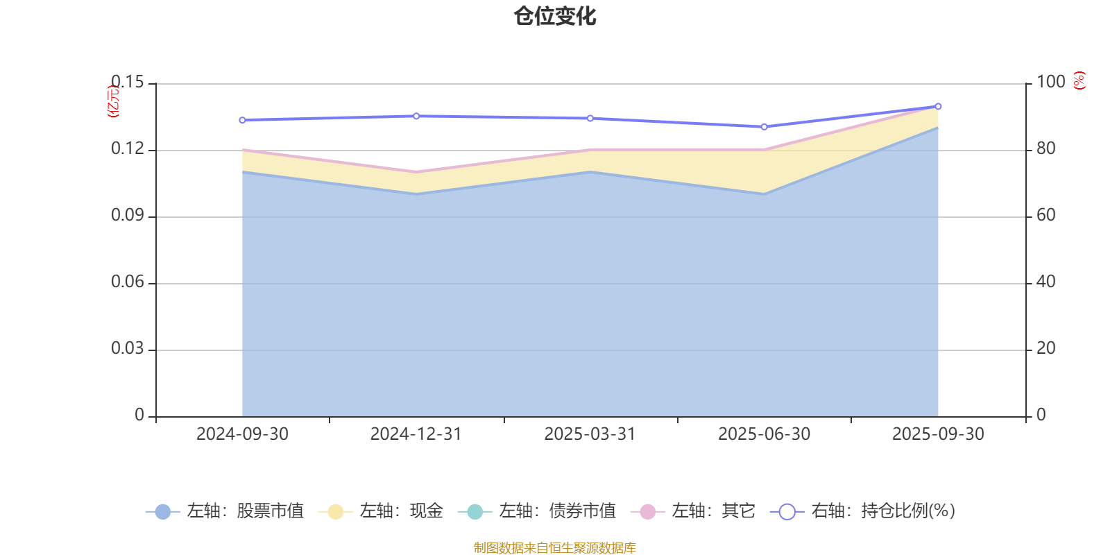 据定期报告数据统计,成立以来平均股票仓位为89.71%,同类平均为83.73%。2025年三季度末基金达到93.06%的最高仓位,2025年上半年末最低,为86.91%。