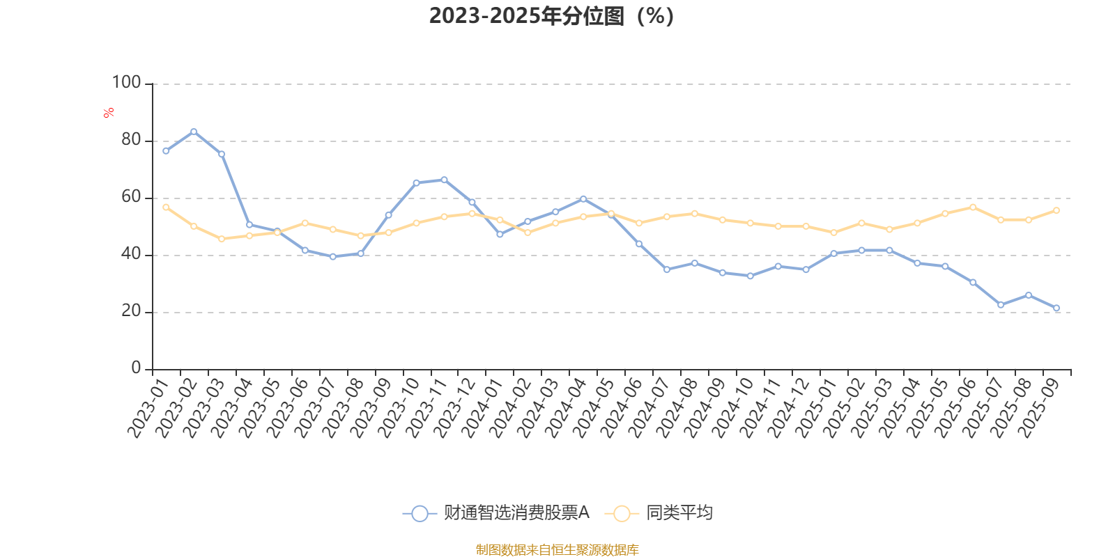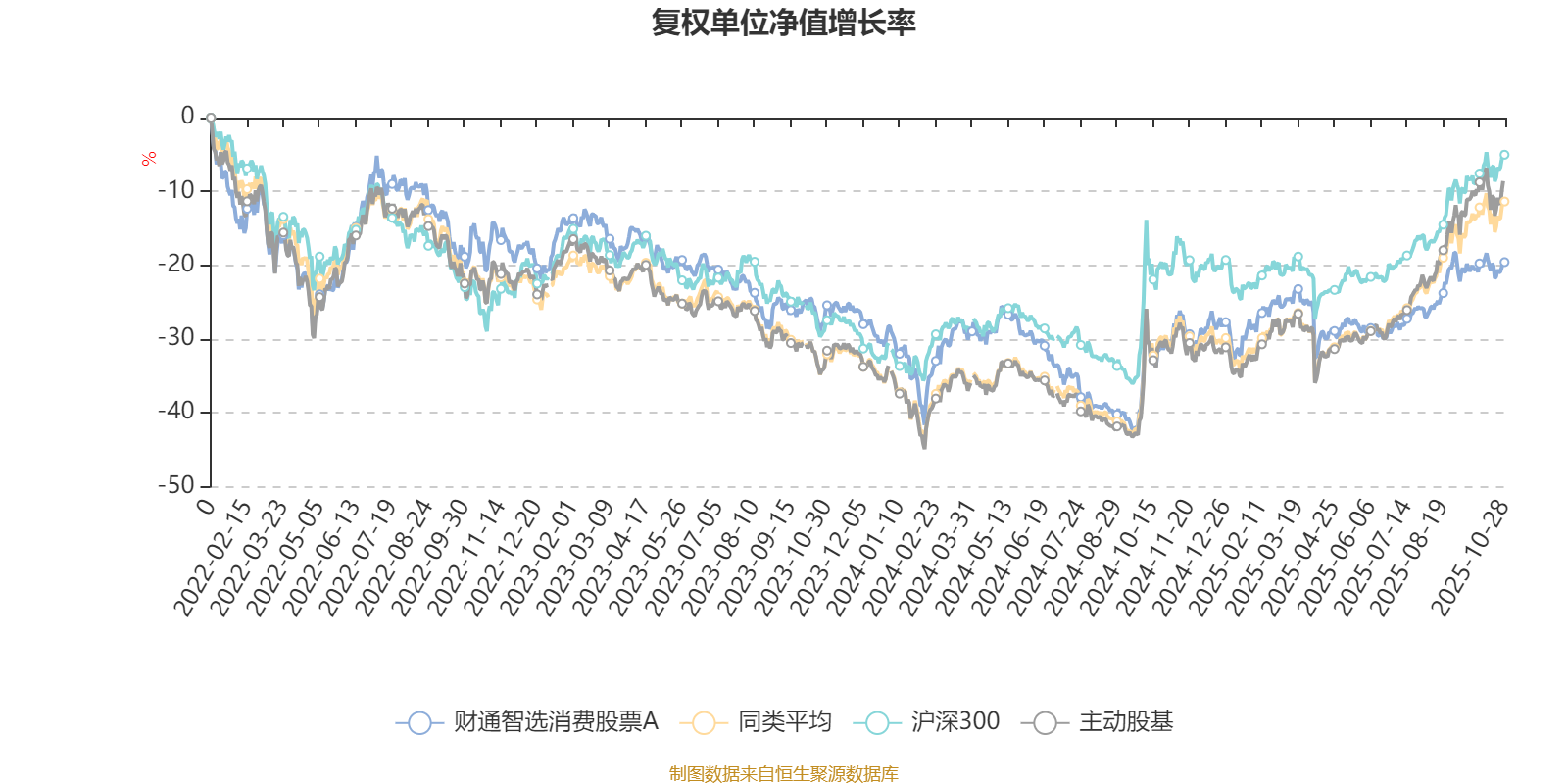 截至10月28日,财通智选消费股票A近三个月复权单位净值增长率为8.43%,位于同类可比基金80/121;近半年复权单位净值增长率为14.33%,位于同类可比基金93/121;近一年复权单位净值增长率为15.97%,位于同类可比基金79/115;近三年复权单位净值增长率为1.53%,位于同类可比基金67/87。